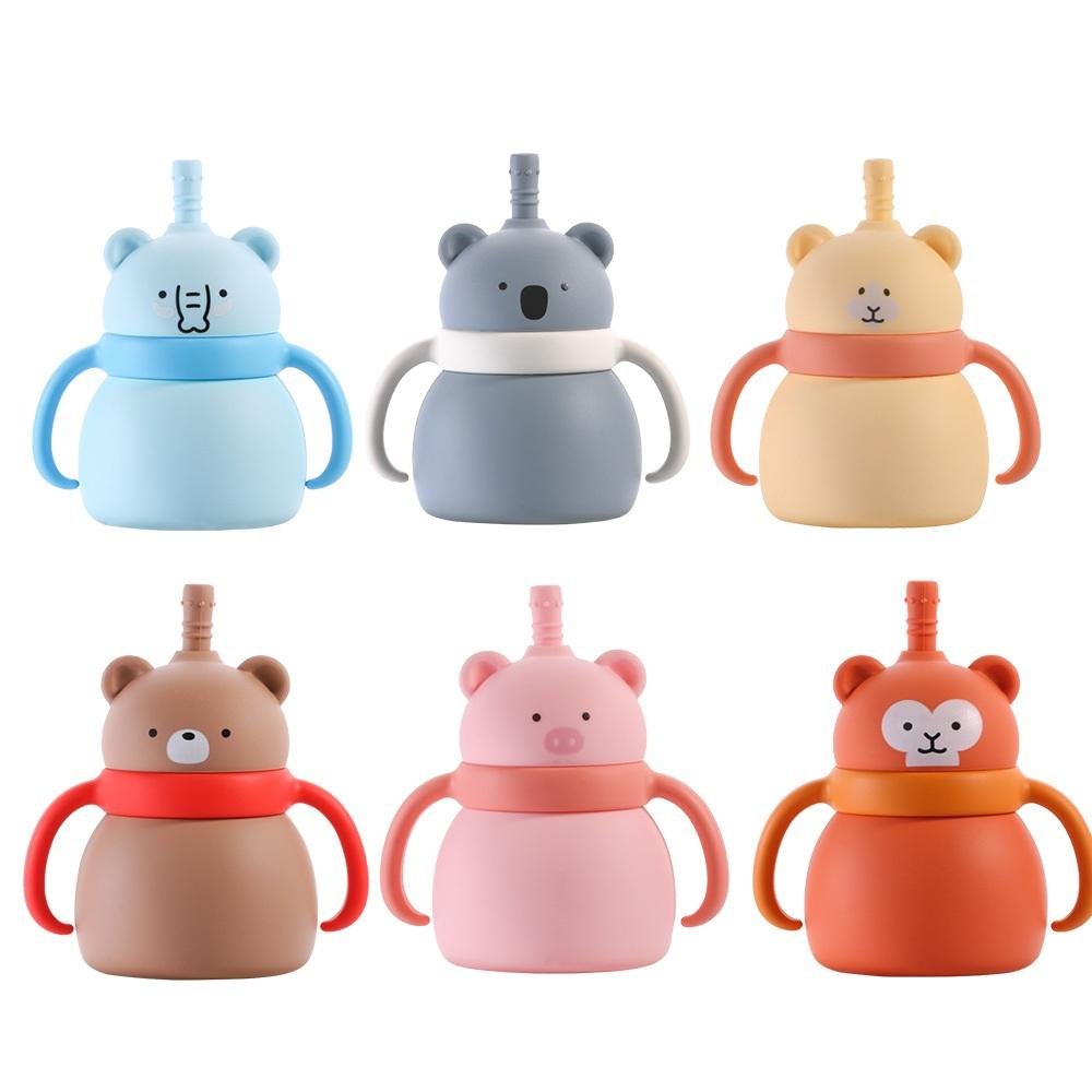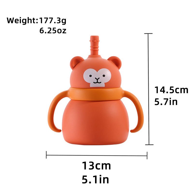 Cute Children’s Food-Grade Silicone Straw Cups Handle Lid Baby Learning Drink Drop Resistant BPA Free 200ml Capacity