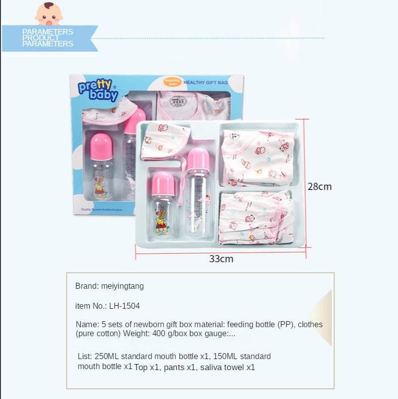 Factory Direct Sales Five Piece Pp Silica Gel Bottle Set Feeding Bottle Baby Suit New Born Baby Clothes Sets 0-3 Months
